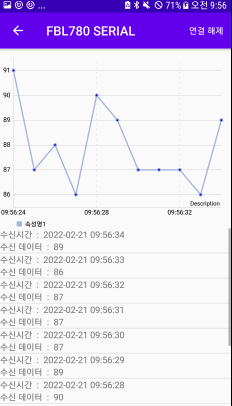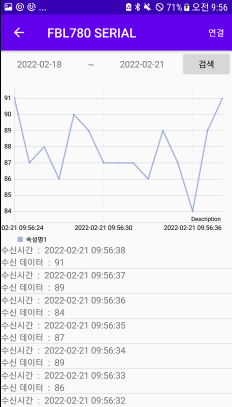 수신 데이터는 아두이노 우노에서 80~100 사이의 랜덤 숫자를 1초마다 보내도록 코딩했습니다.
